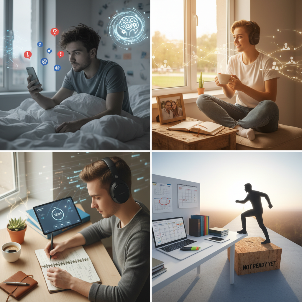 大多数人醒来后立即拿起手机。问题是?你以反应模式开始一天,被信息、新闻和干扰淹没。相反,醒来后花10分钟只和自己在一起。没有手机,没有通知。喝一杯水。找个安静的地方坐下。问自己一个问题:今天对我来说真正重要的是什么?